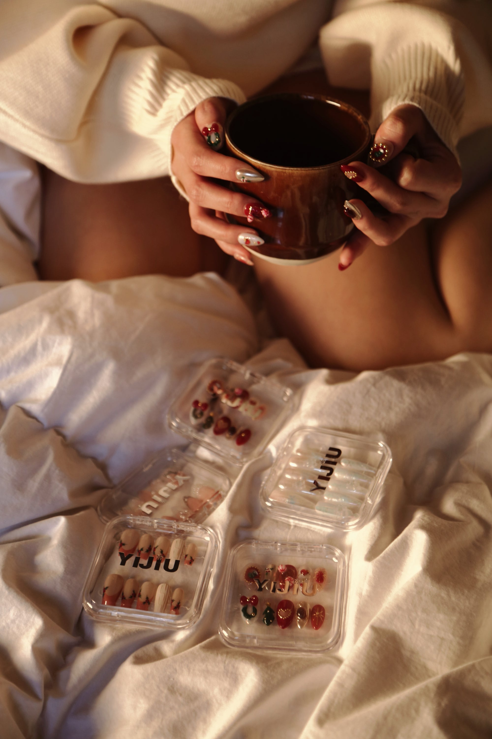YIJIU Short-length press-on nails are handmade, dreamy nail sets ranging from 18mm to 20mm in length, with the thumb piece as a reference. These reusable designs allow you to effortlessly switch between bold and classic styles, ensuring natural feeling while wearing, easy application and removal ⋆𐙚⊹♡